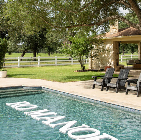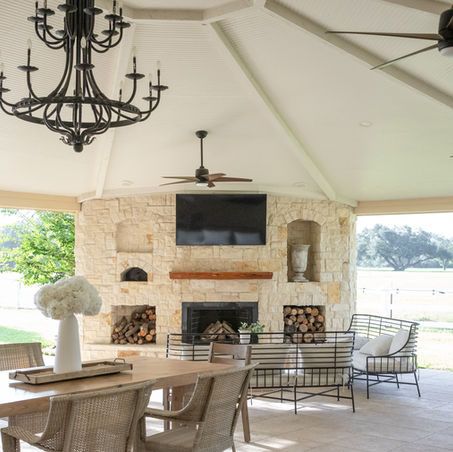 The Ivy Patio offers a warm, covered open-air setting ideal for rehearsal dinners, intimate celebrations, and long summer evenings with friends and family. Overlooking the pool, the space is anchored by a statement iron chandelier and surrounded by limestone finishes that create a relaxed yet refined atmosphere. A built-in bar and grill, comfortable seating areas, and a fireplace invite guests to gather and linger, while a separate fire pit area adds another place to unwind. Televisions and a surround sound system enhance the overall experience, with seating for up to 75 guests.